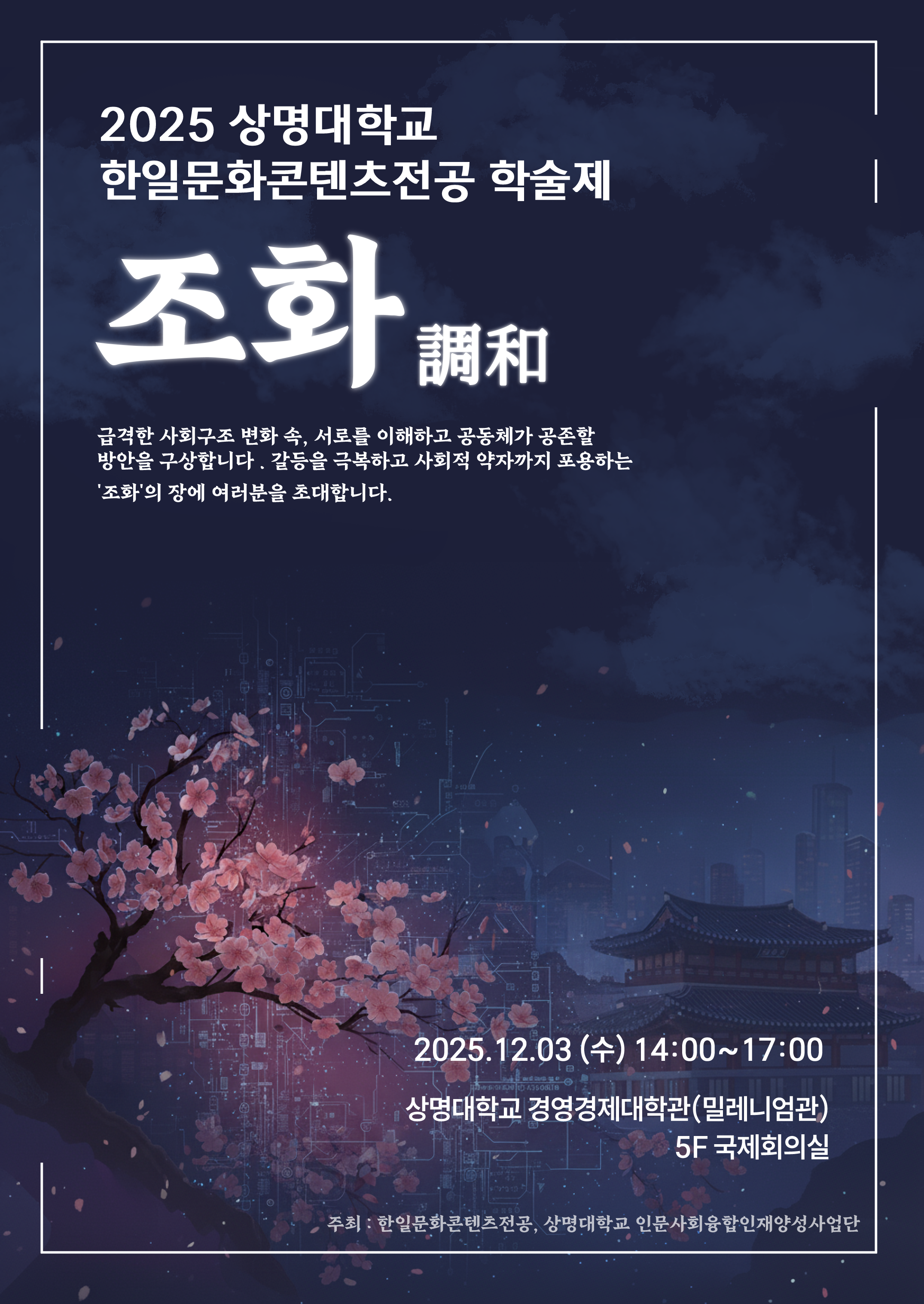 상명대학교 인문사회 융합인재양성사업단과 한일문화콘텐츠전공에서 ‘2025 사회구조분야 조화공모전’을 아래와 같이 개최합니다.
